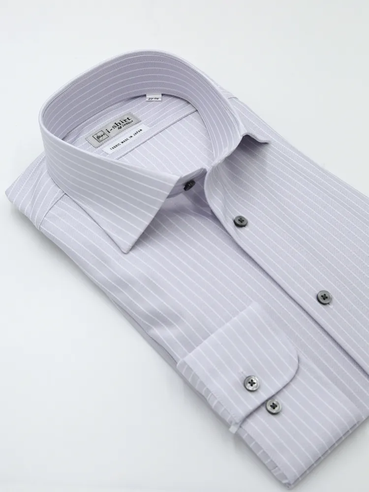 【完全ノーアイロン】長袖 アイシャツ セミワイド【トップヘザーシリーズ】ストライプ調 ワイシャツ i-shirt 通年(L.グレー)