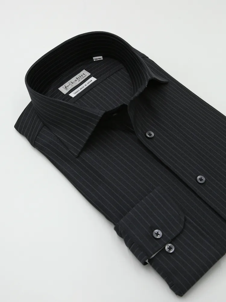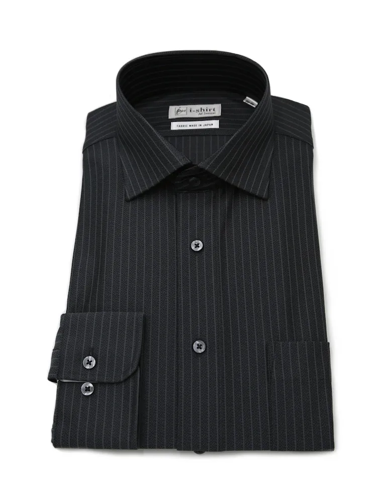 【完全ノーアイロン】長袖アイシャツセミワイドストレッチ吸水速乾ストライプワイシャツi-shirt通年