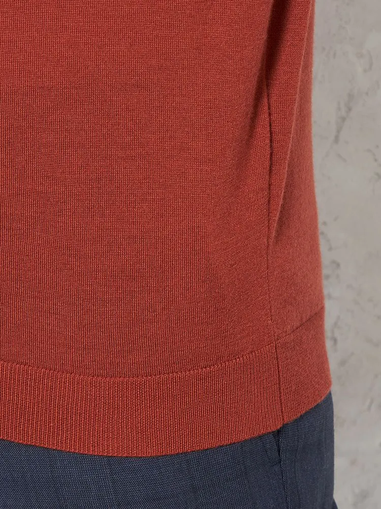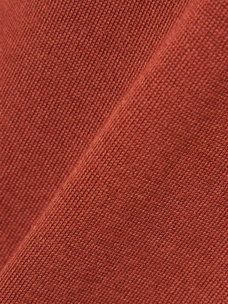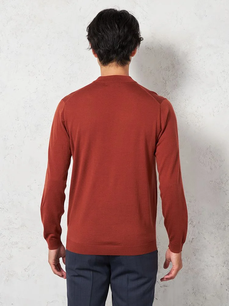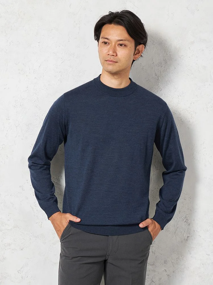 美しい光沢感となめらかな肌ざわりが魅力のメリノウールを使用した長袖ニット。