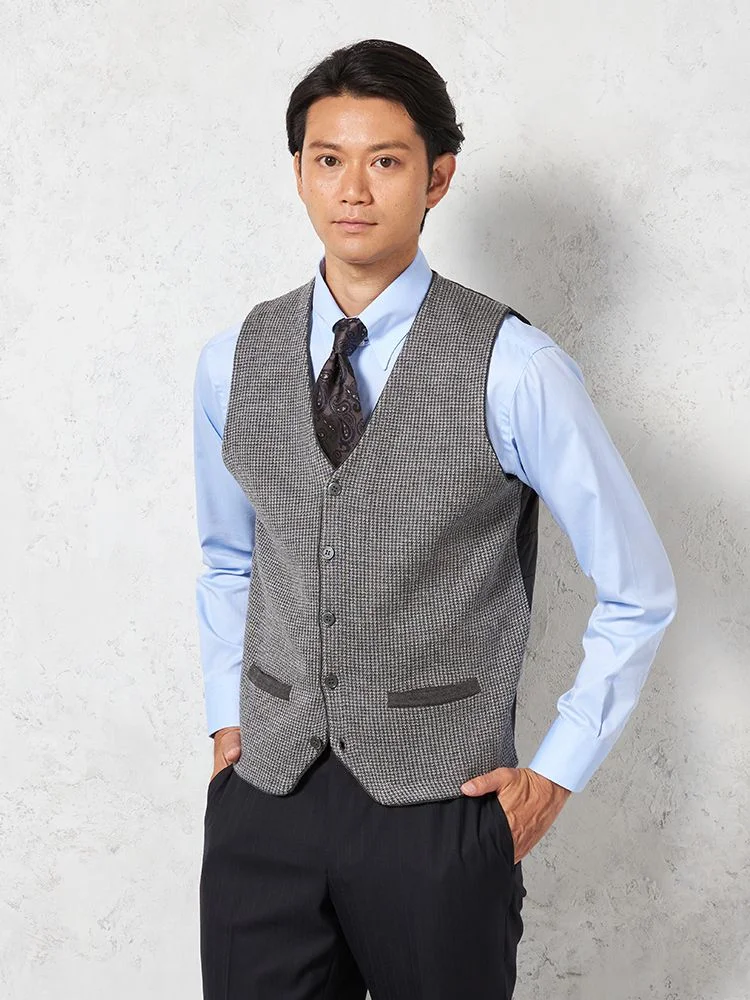 【ウォッシャブル】ヘリンボーン柄 ニットジレ 放電 抗ピリング ヘリンボン ベスト リッケンバッカー 秋冬