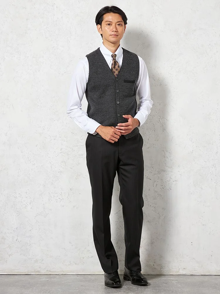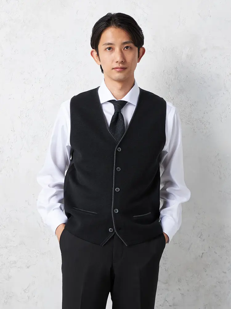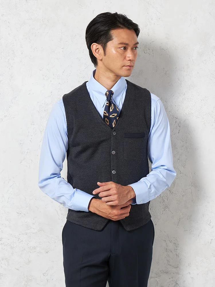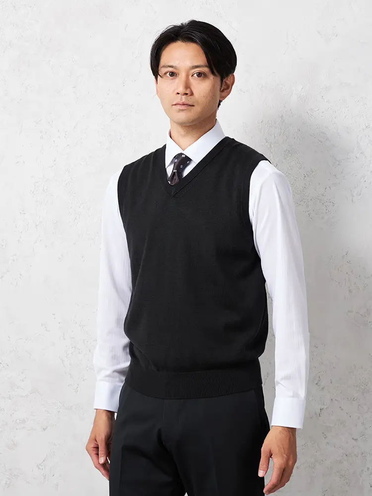 【ウォッシャブル】ミラノリブ前割れベスト放電抗ピリング無地ベストリッケンバッカー秋冬