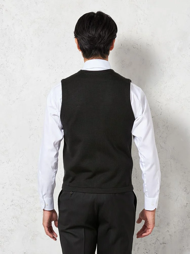【制電&抗ピリング】鹿の子ニットジレ カジュアルインナー 無地 リッケンバッカー 秋冬(ブラック)