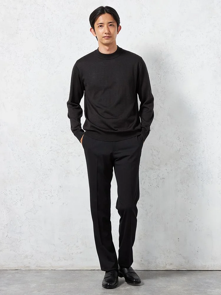 【制電&抗ピリング】天竺 モックネックセーター カジュアルインナー 無地 リッケンバッカー 秋冬(ブラック)