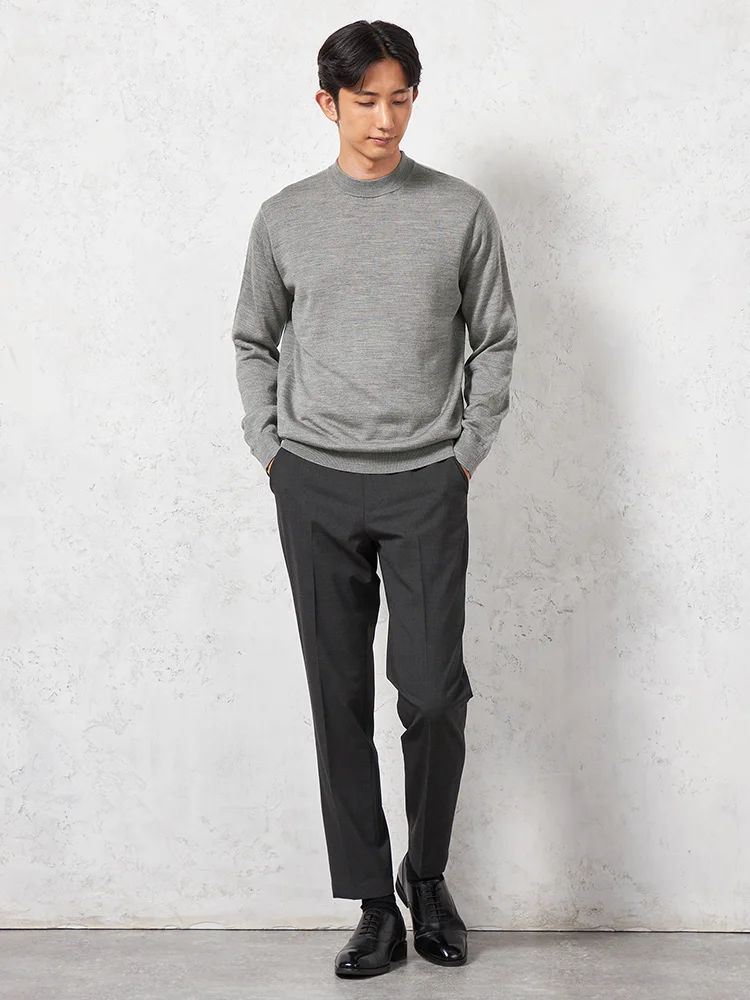 ベーシックなデザインと合わせやすいカラーが嬉しい長袖モックネックニットです。