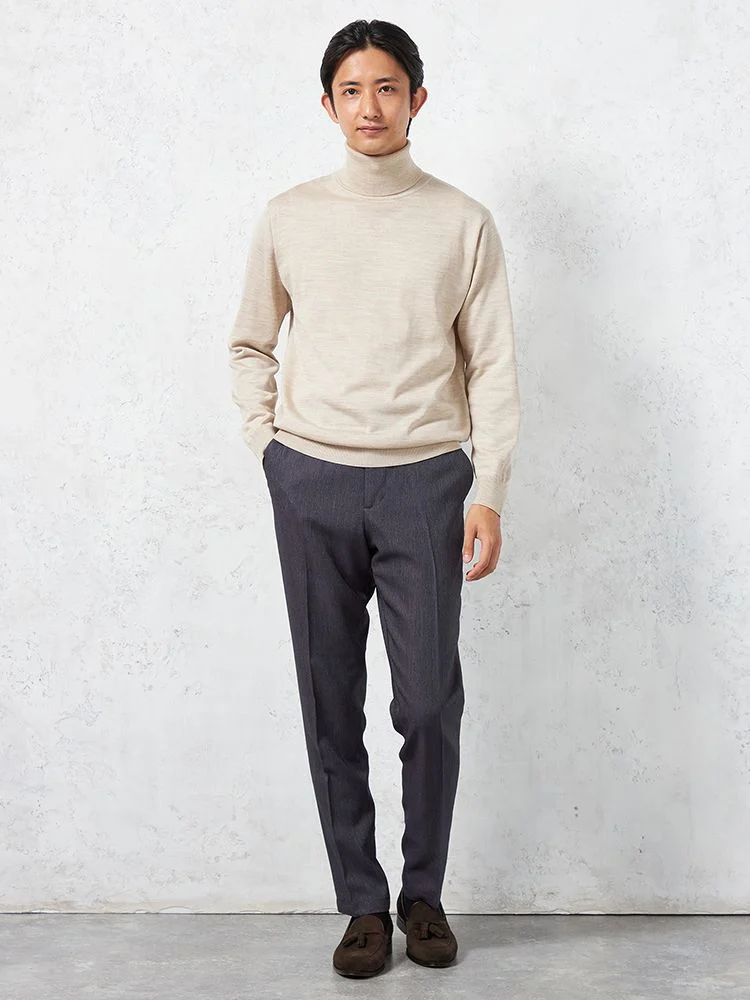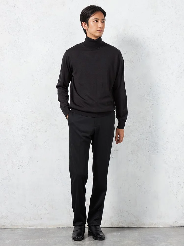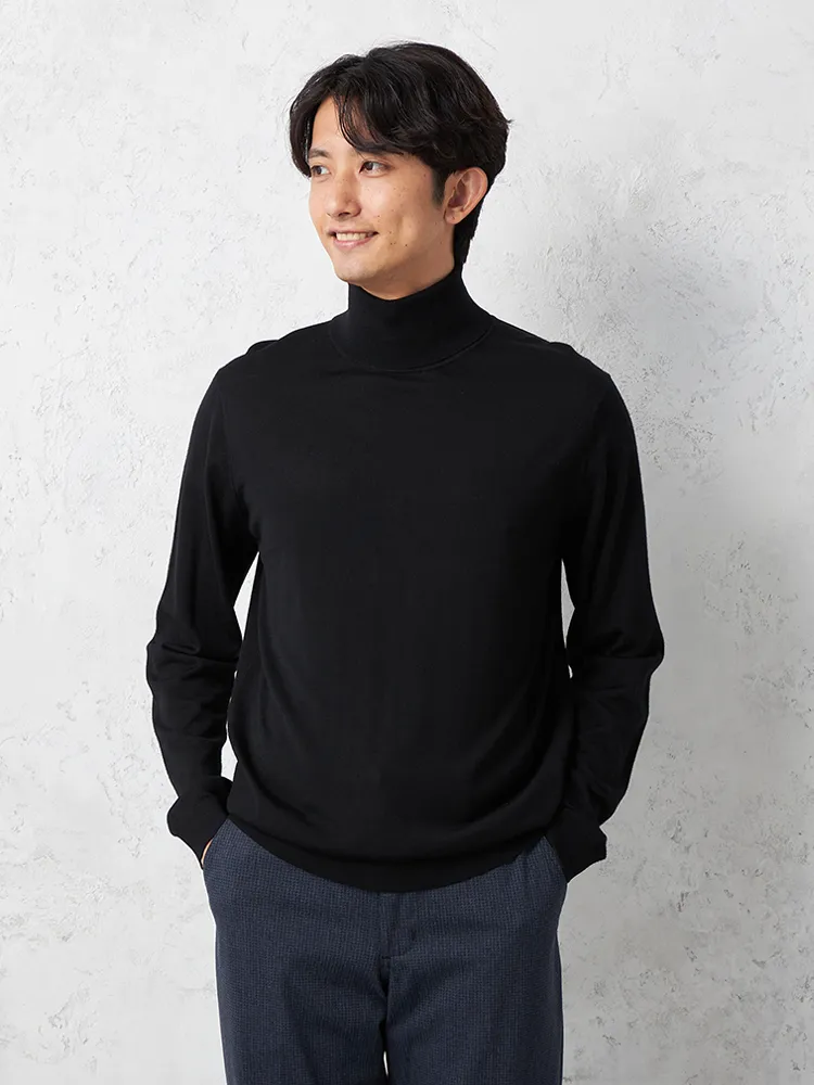 重ね着スタイルにも適している、程よい厚みの長袖タートルネックです。