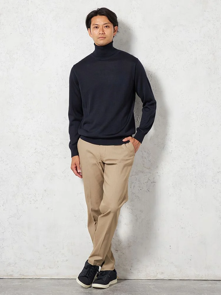 【TOKYORUN】14G天竺タートルネックニットカジュアルインナー長袖ウォッシャブル抗ピリング吸汗速乾秋冬