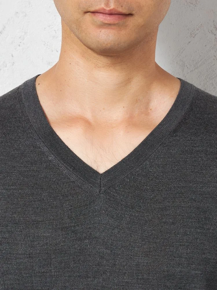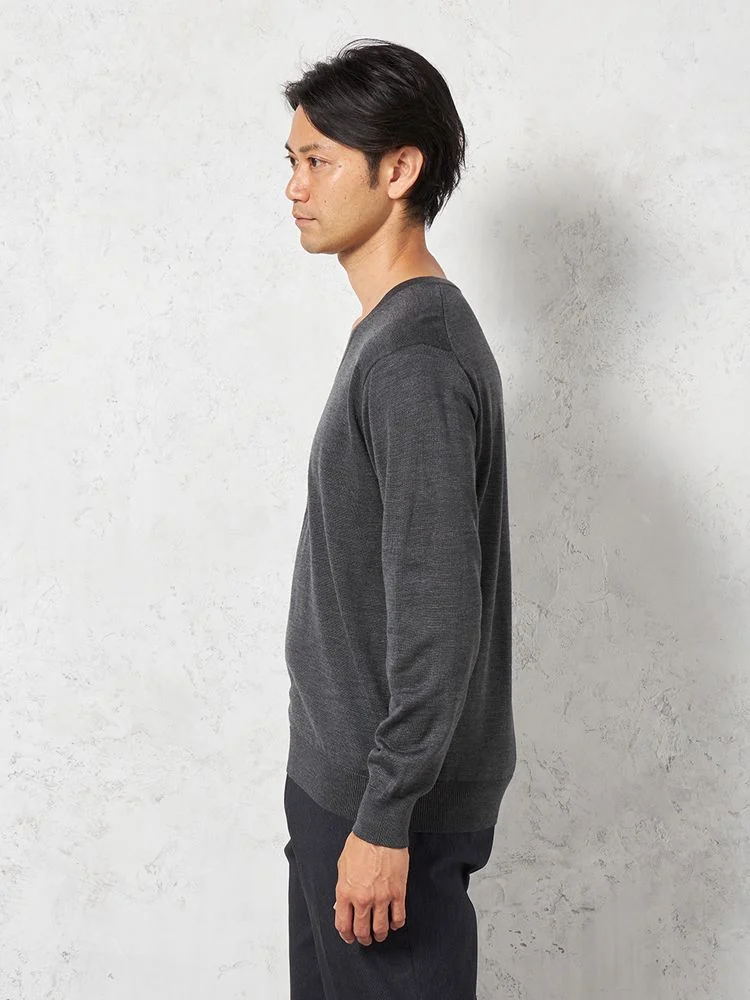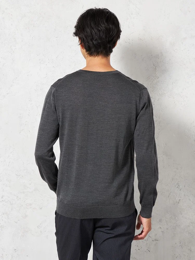 【制電&抗ピリング】天竺 Vネックセーター カジュアルインナー 無地 リッケンバッカー 秋冬(C.グレー)