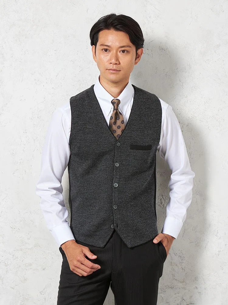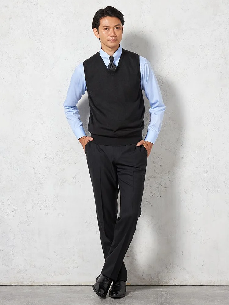 【ウォッシャブル】ミラノリブ前割れベスト放電抗ピリング無地ベストリッケンバッカー秋冬