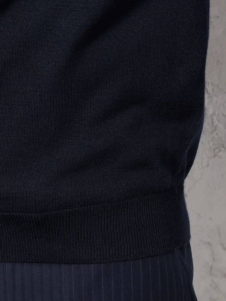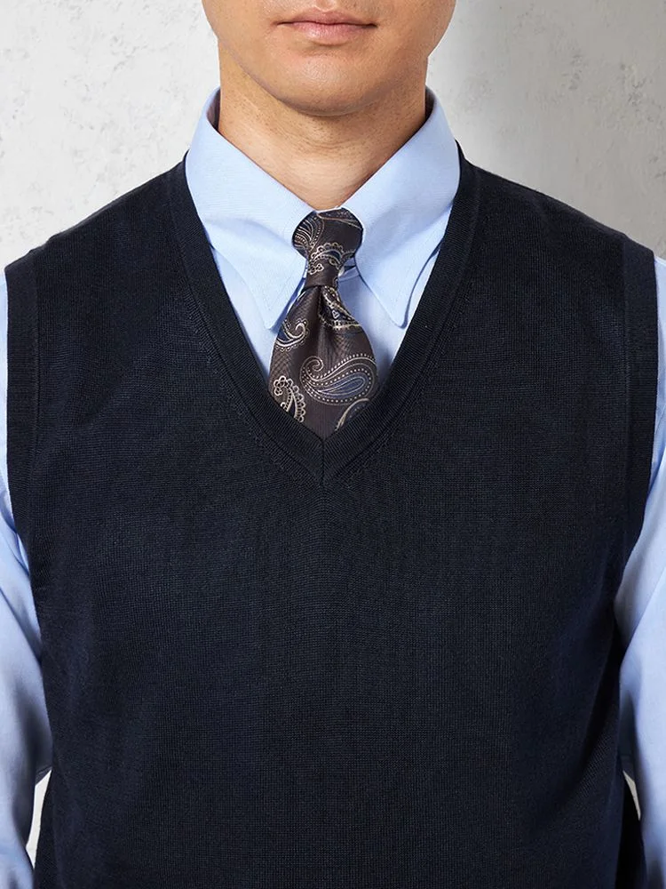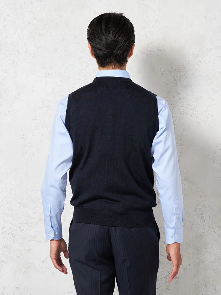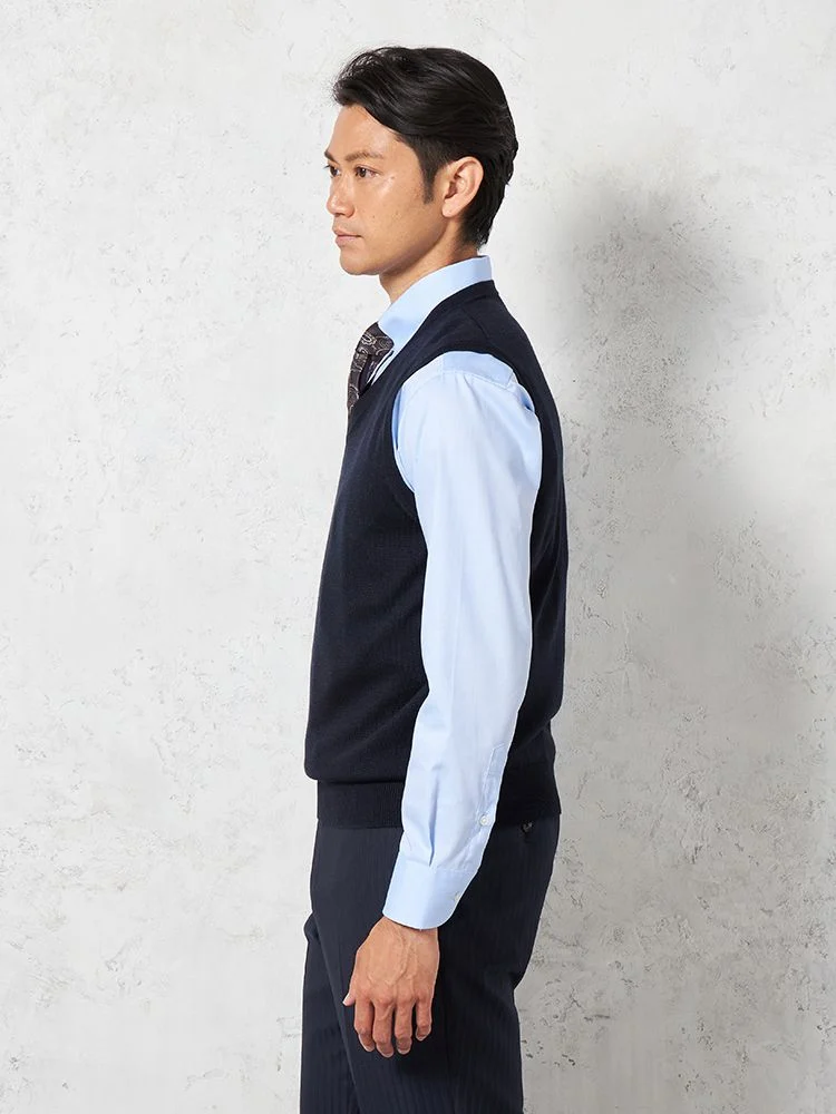 【制電&抗ピリング】天竺 Vネックベスト カジュアルインナー 無地 リッケンバッカー 秋冬(ネイビー)