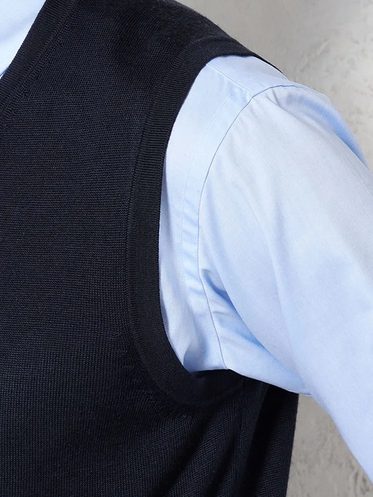 【ウォッシャブル】ニットVネックベスト放電抗ピリング無地天竺ベストリッケンバッカー秋冬