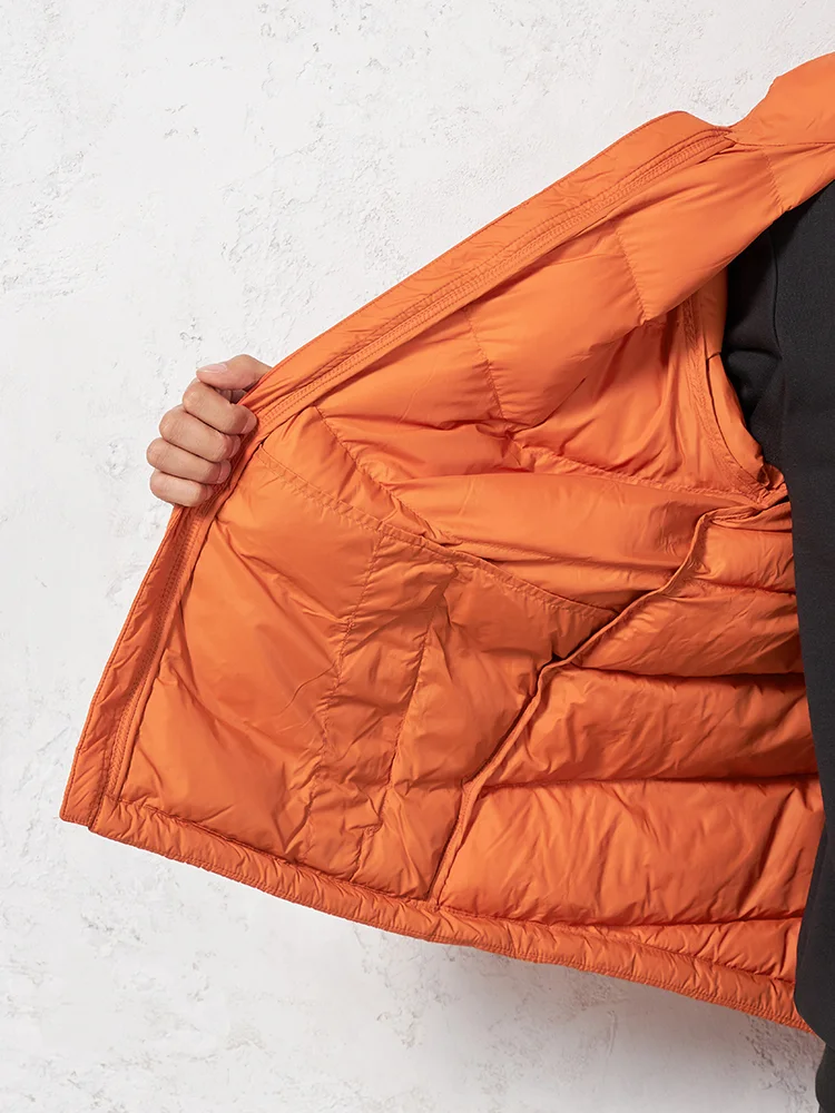 首元からの冷気の侵入も防ぐスタンドカラー仕立て。