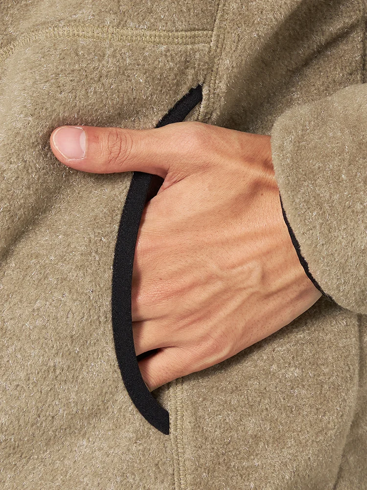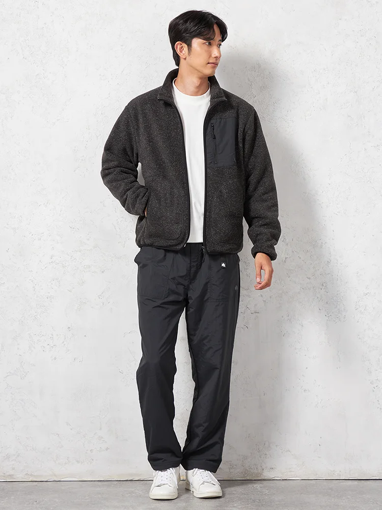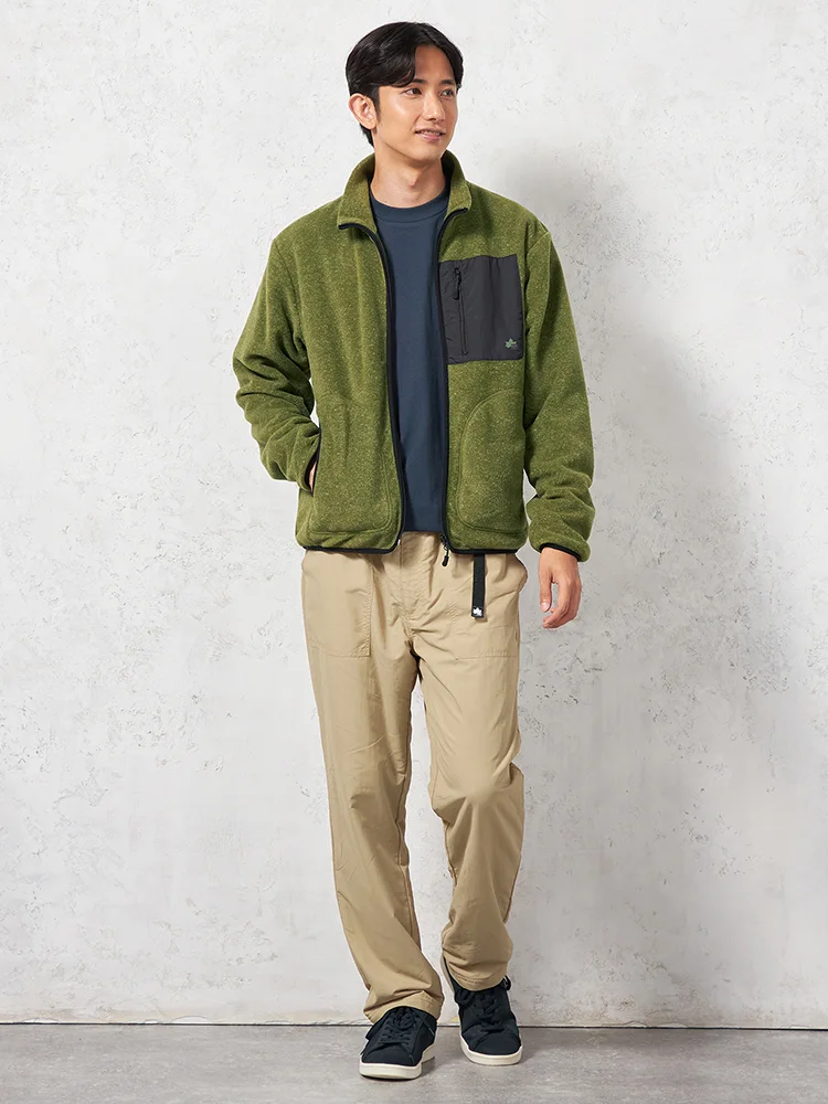 ウォーム感のあるコーディネートを楽しめるフリースジャケット。