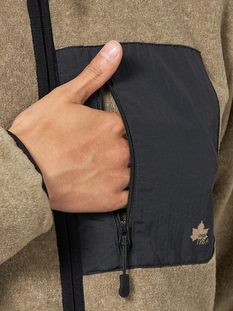 【LOGOS-ロゴス-】 ウールライク フリースブルゾン 裏タフタ付き カジュアルアウター 無地 秋冬(カーキー)