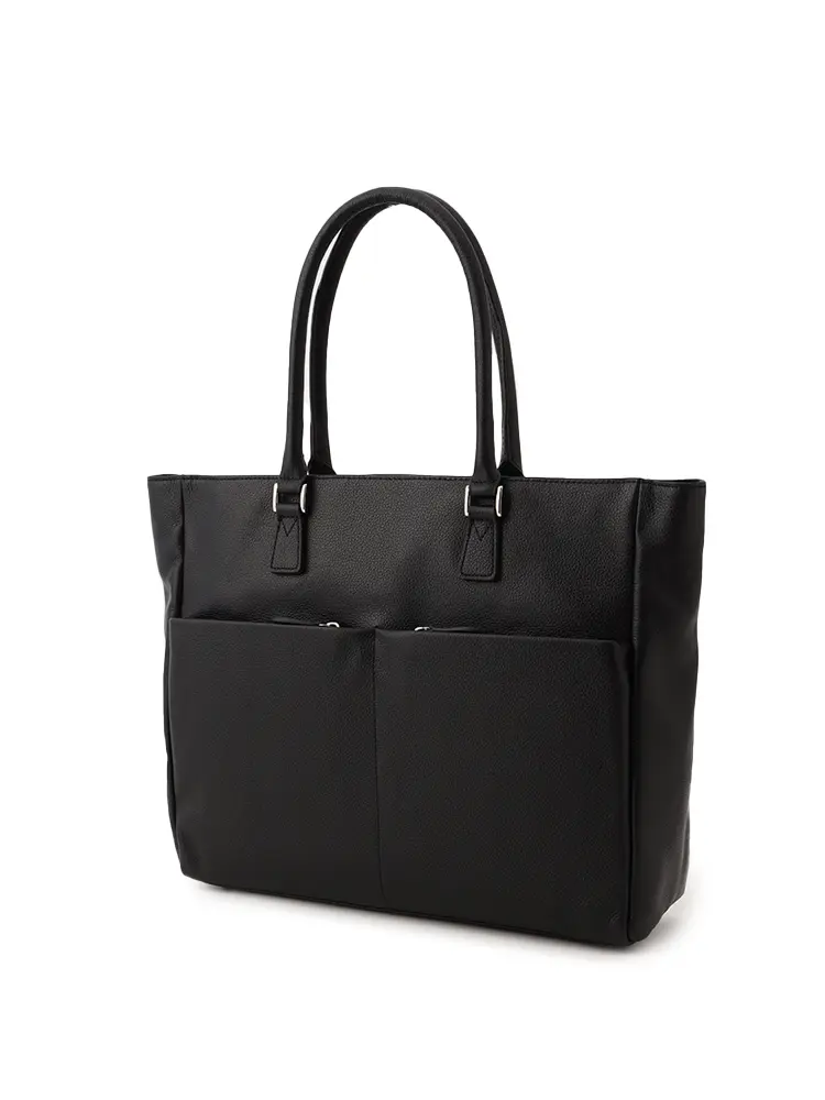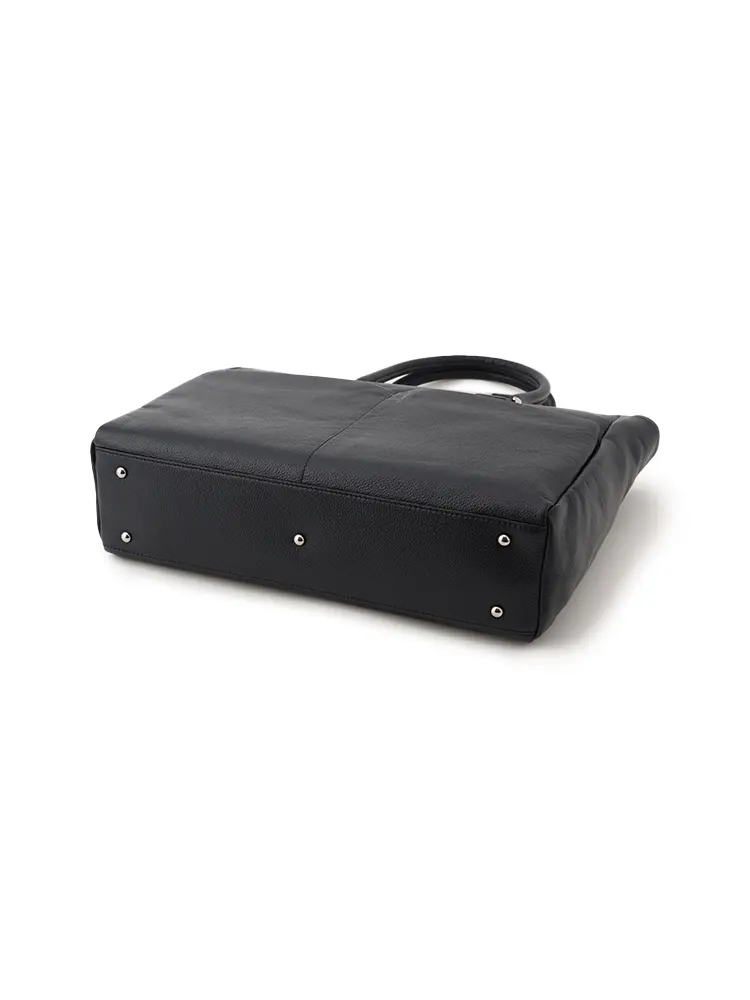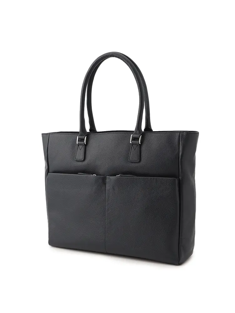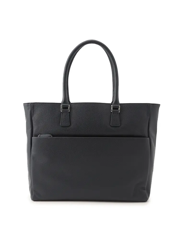 シボ感のある上質な牛革を100%使用した、汎用性の高いブラックトート。