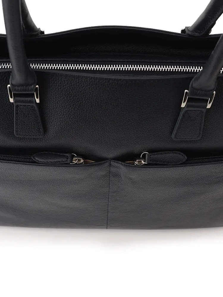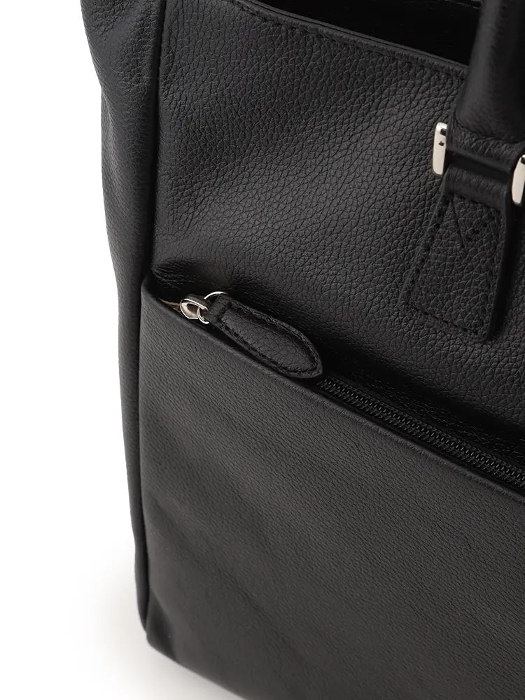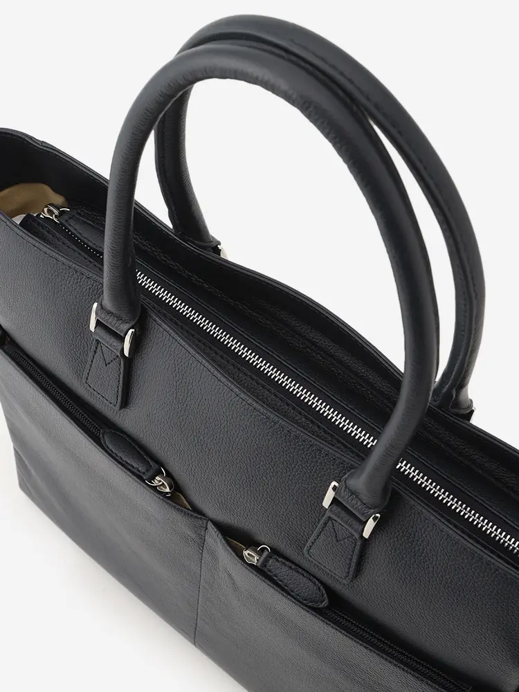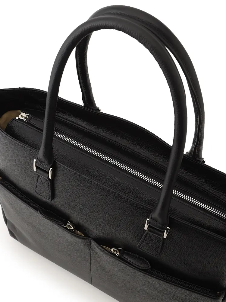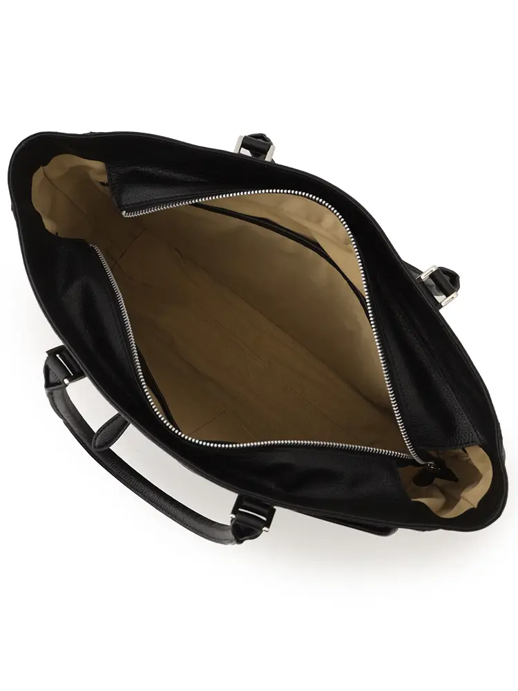 シボ感のある上質な牛革を100%使用した、汎用性の高いブラックトート。