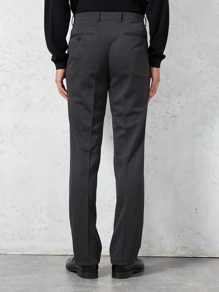 パンツの腰回りに生地の折り込みがなく、スッキリとしたシルエットを実現します。シンプルで洗練された印象を与え、すっきりとした着こなしが可能です。