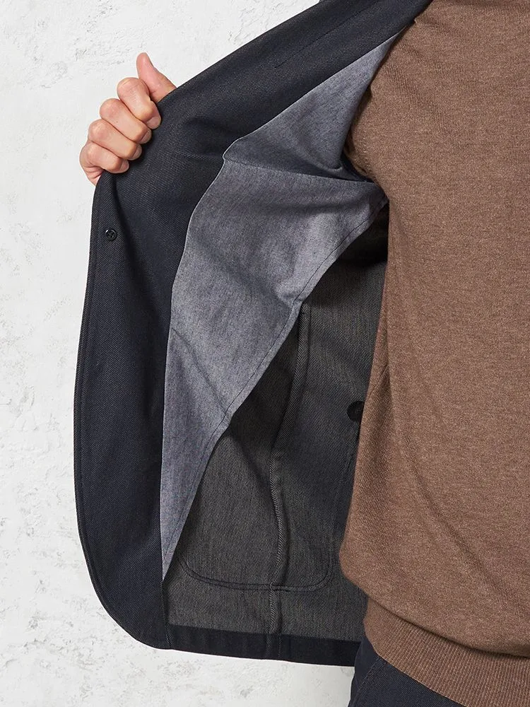 【EDWINデニスラ】ヴィンテージブルージャケット【セットアップ商品有】ストレッチ 無地 通年(ネイビー)