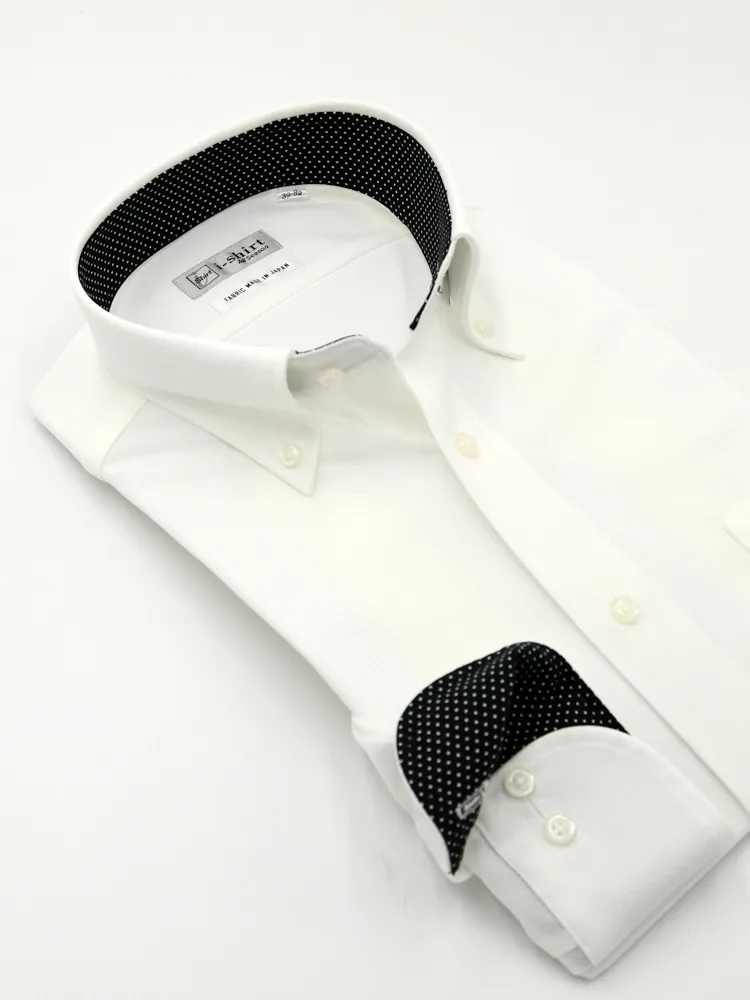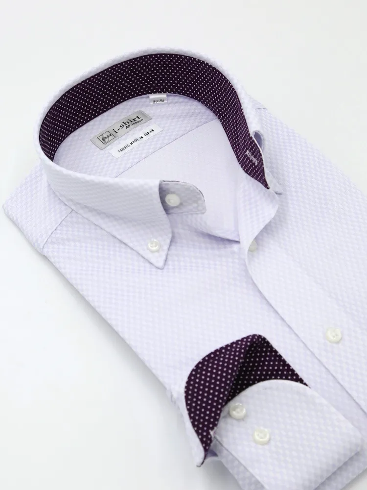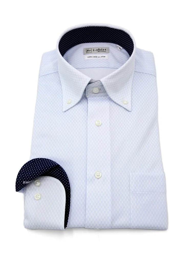 【完全ノーアイロン】長袖アイシャツボタンダウン吸水速乾ストレッチダイヤ織柄無地ワイシャツi-shirt通年