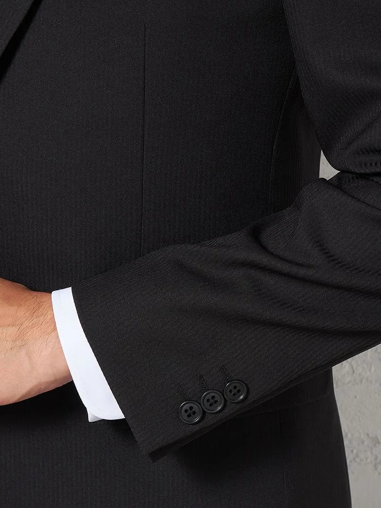 【即納】【WEB限定】スーツ2つボタンブラックシャドウストライプ上下ウォッシャブル3シーズン対応