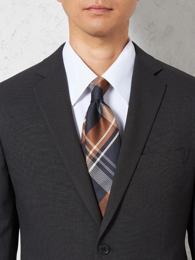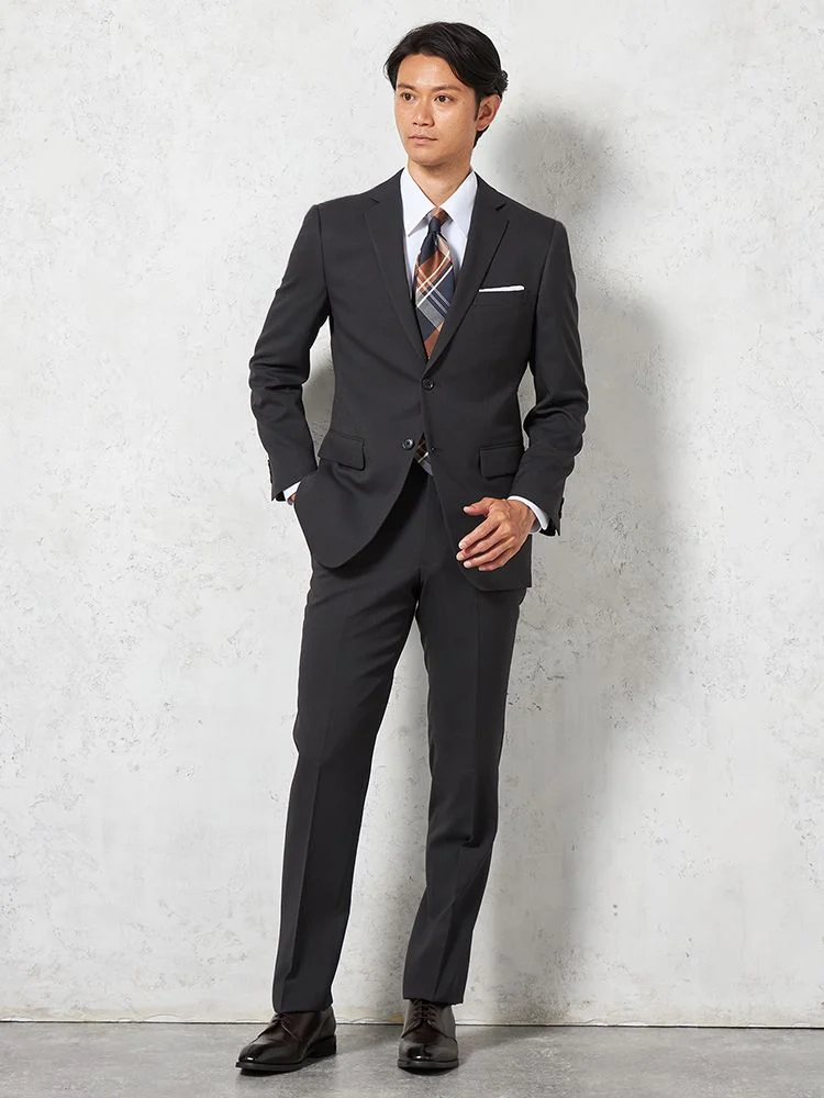 【即納】スーツ 2つボタン【WEB限定】4WAYストレッチ 織柄 チャコールグレー 通年