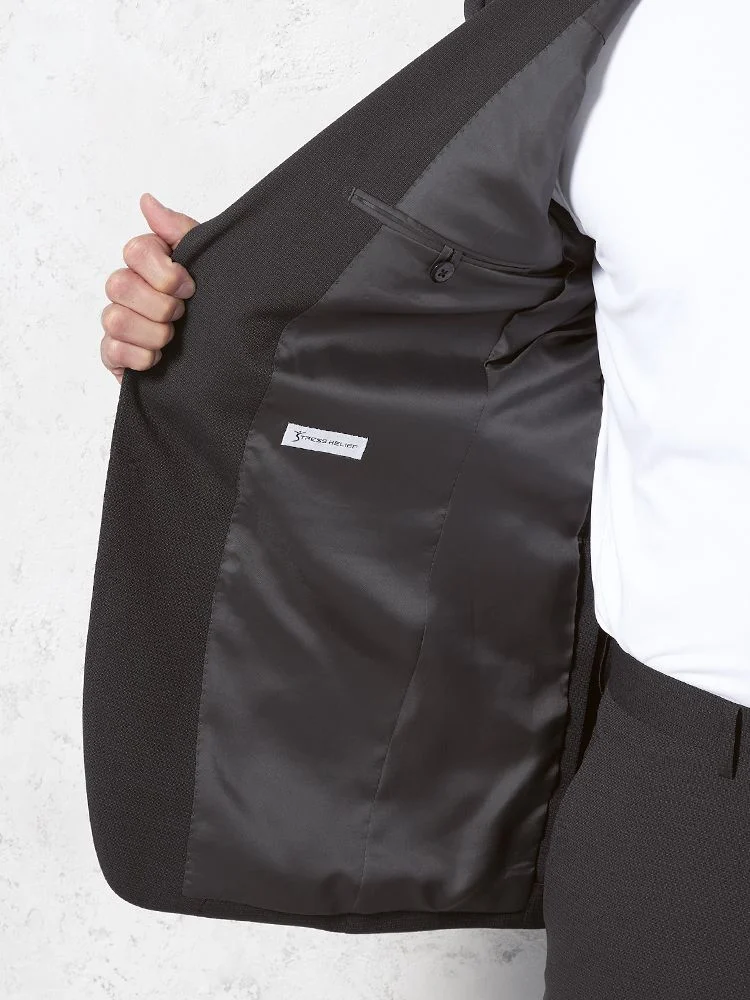 【即納】スーツ 2つボタン【WEB限定】4WAYストレッチ 織柄 ブラック 通年