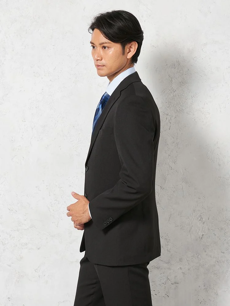 【即納】スーツ2つボタン【WEB限定】4WAYストレッチ織柄ブラック通年