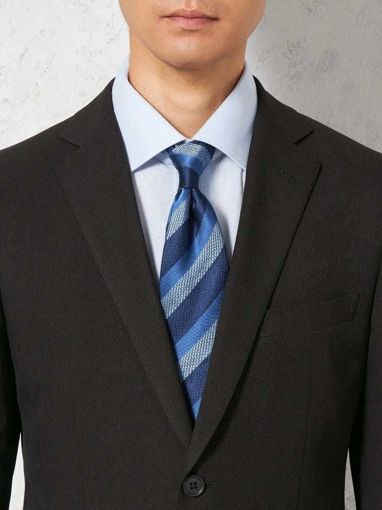 【即納】スーツ2つボタン【WEB限定】4WAYストレッチ織柄チャコールグレー通年