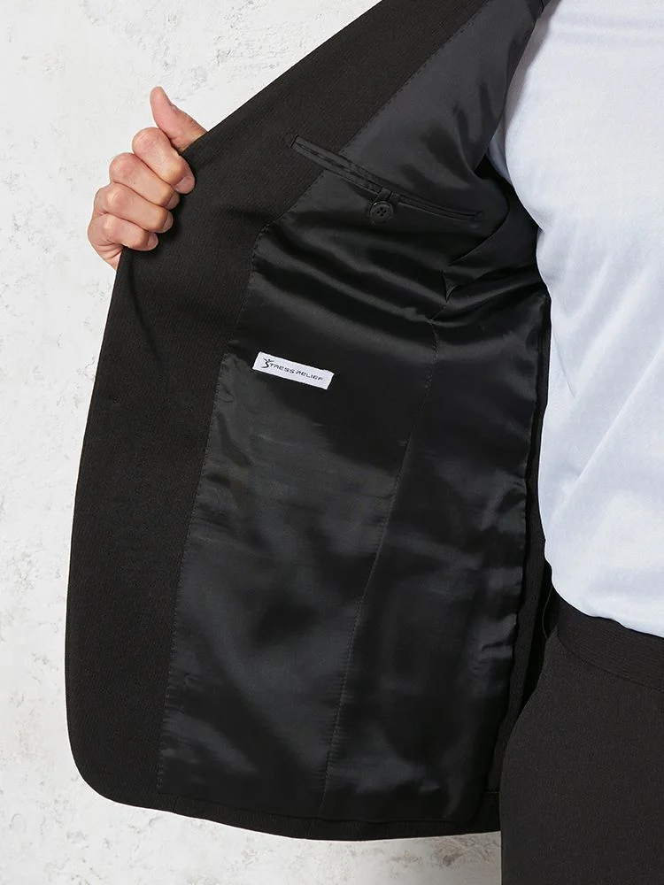 【即納】スーツ 2つボタン【WEB限定】4WAYストレッチ 織柄 ブラック 通年