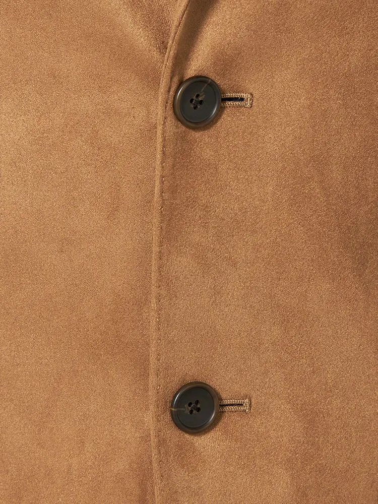 スウェード調のニット素材で仕立てた、雰囲気のある2つボタンジャケットです。