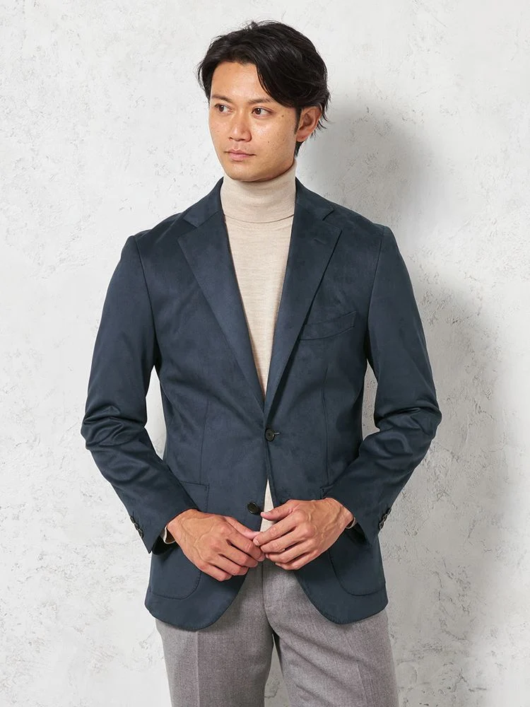 スウェード調のニット素材で仕立てた、雰囲気のある2つボタンジャケットです。