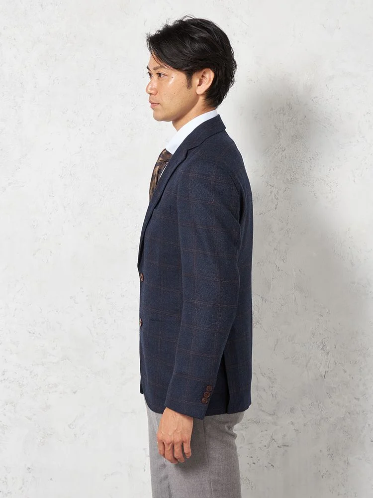 【ストレッチ】ジャケット2つボタンTOLLEGNO社生地使用キュプラ裏地グレンチェックS&MBLUELABEL