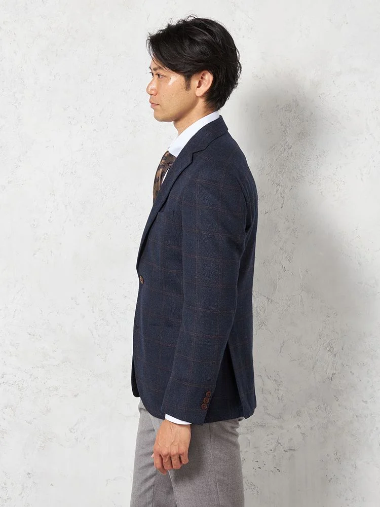 【ウール100%】ジャケット 2つボタン イタリア ディプライ社製生地 チェック ネイビー RUCKEN BACCHAR 秋冬