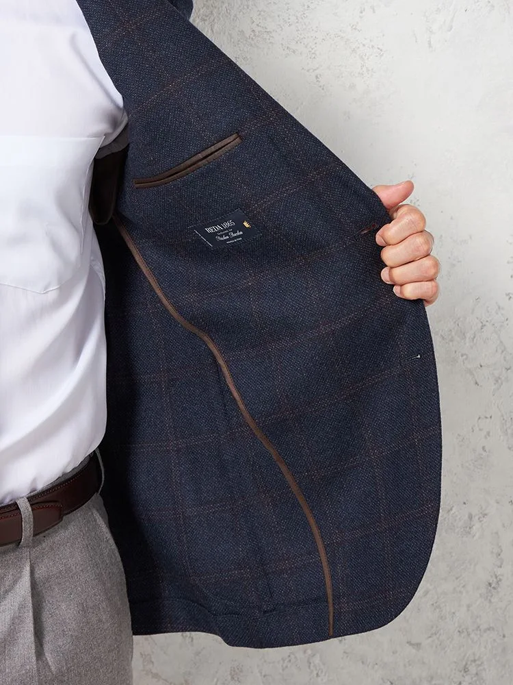 【ウール100%】ジャケット 2つボタン【REDA】イタリアインポート素材 軽量仕立て チェック ネイビー RUCKEN BACCHAR 秋冬