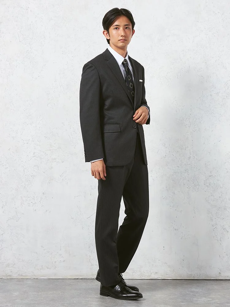 【即納】【WEB限定】スーツ2つボタンブラックシャドウストライプ上下ウォッシャブル3シーズン対応