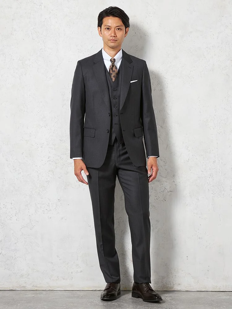 【ウール100%】スリーピーススーツ 2つボタン 背抜き ヘリンボン S&M BLUE LABEL 通年