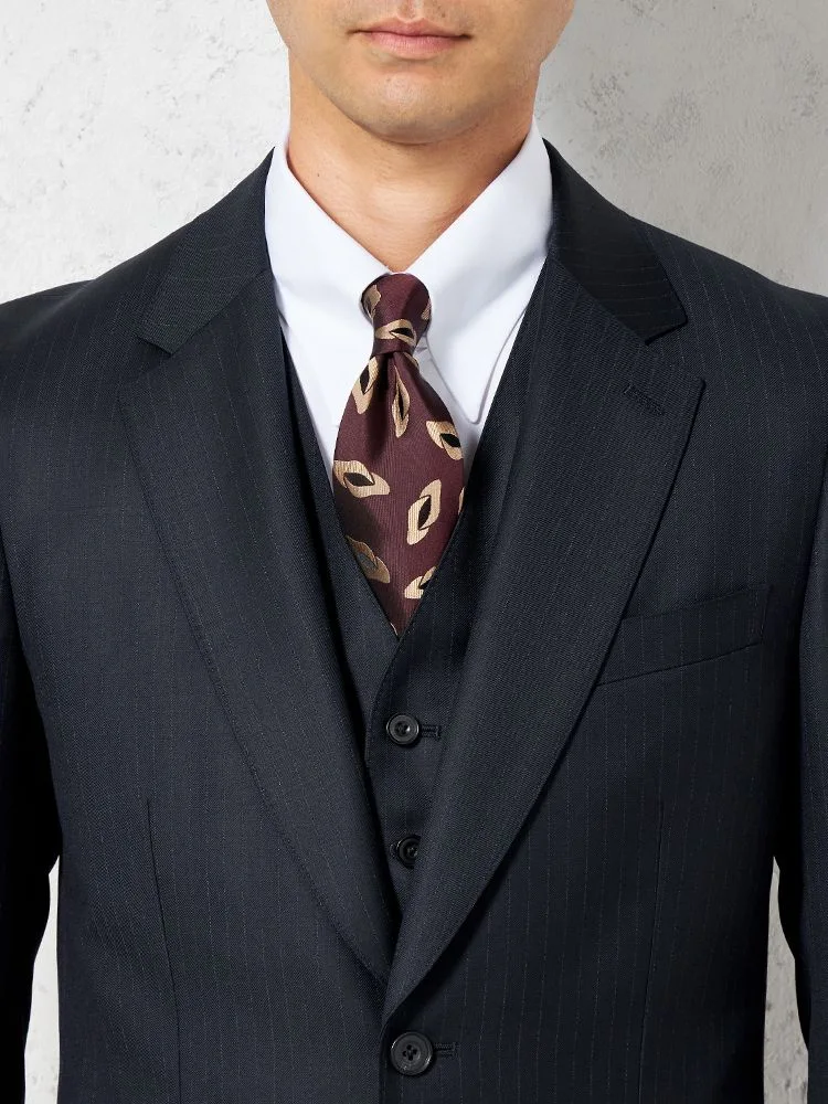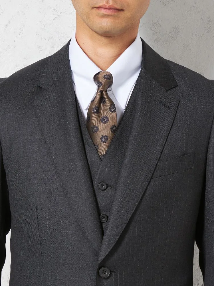 【ウール100%】スリーピーススーツ2つボタンREDAマイクロパターンリッケンバッカー