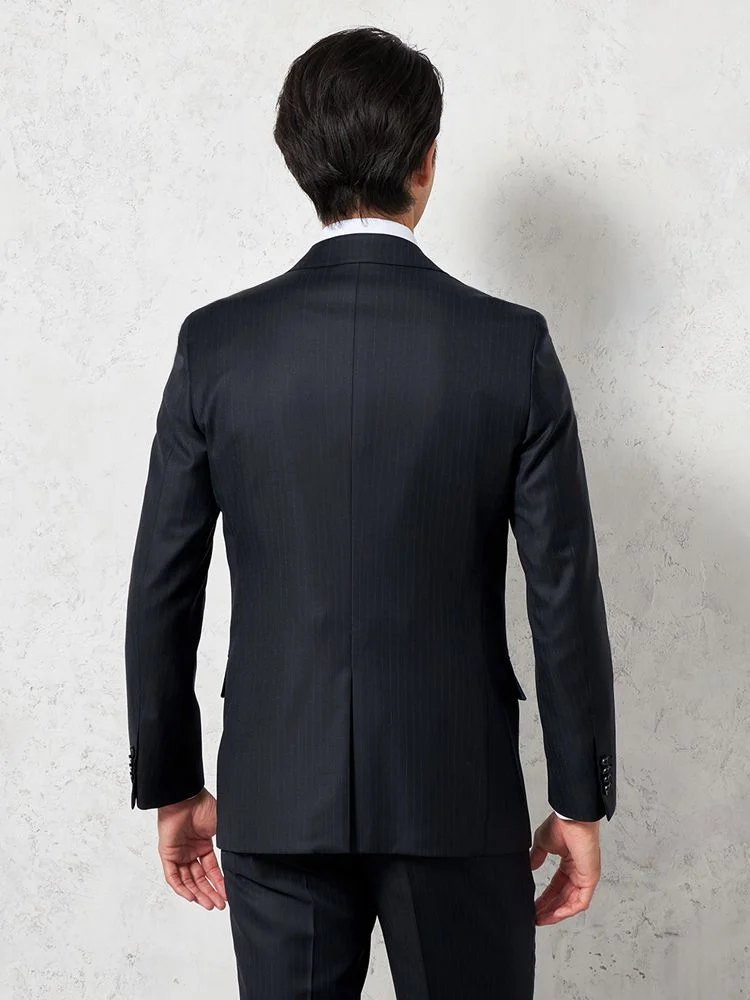 【即納】スーツ2つボタン【WEB限定】4WAYストレッチシャドウストライプブラック