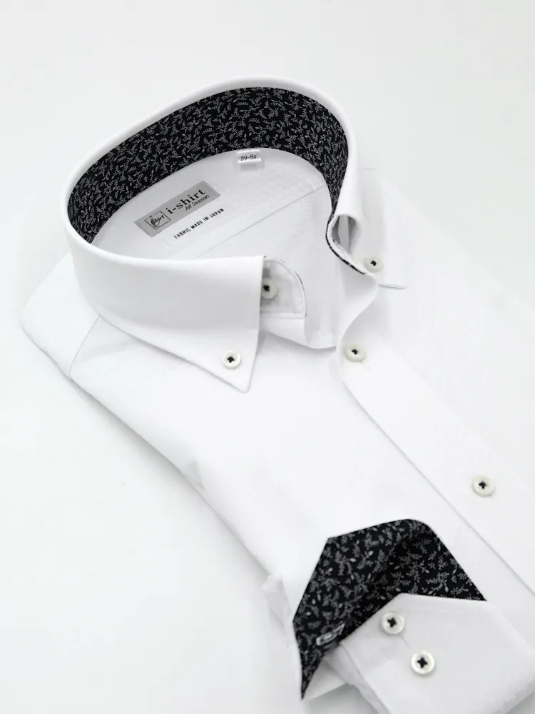 【完全ノーアイロン】長袖 アイシャツ ボタンダウン 千鳥格子 ストレッチ 吸汗速乾 ワイシャツ i-shirt 通年(ホワイト)