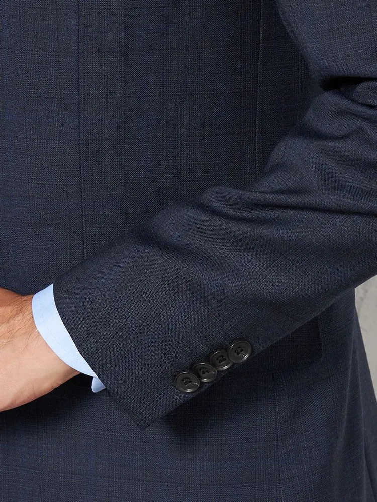 【ウール100%】スーツ 2つボタン イタリアインポート素材 ネイビー チェック リッケンバッカー 秋冬