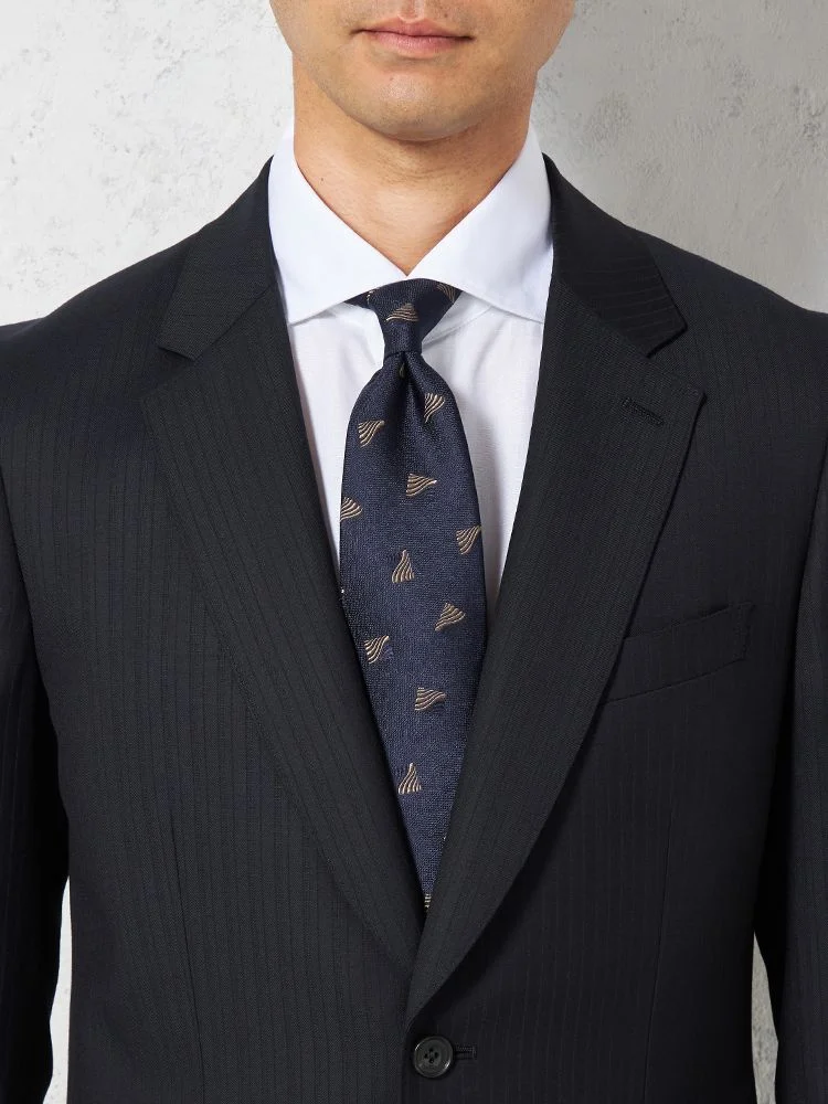 上品な印象に着こなせるネイビー×シャドウストライプ。