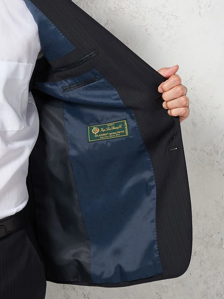 【ウール100%】スーツ 2つボタン イタリアインポート素材 ネイビー ストライプ リッケンバッカー 秋冬