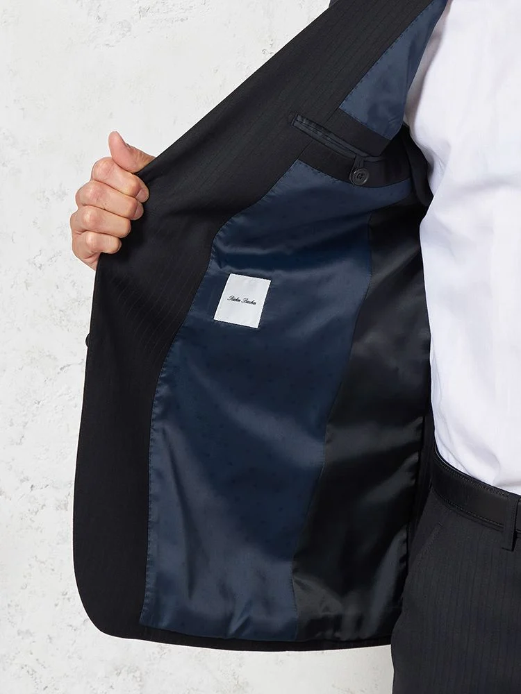 【ウール100%】スーツ 2つボタン イタリア製生地 ブラック シャドウストライプ リッケンバッカーホワイト