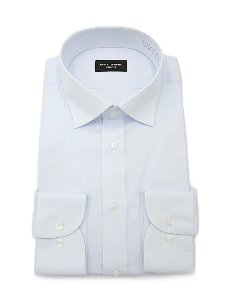 【形態安定】長袖 ワイシャツ セミワイドカラー ツイル柄【スリム】【フレッシャーズにもおすすめ】nero 通年【スリムデザイン】