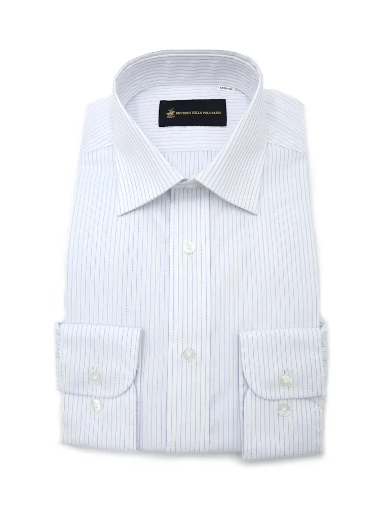 【形態安定】長袖 ワイシャツ セミワイド イージーケア ストライプ RON POSTAL 通年