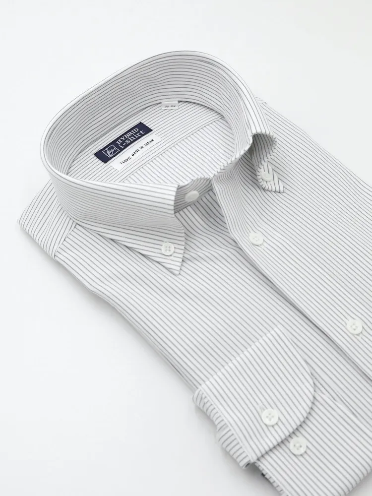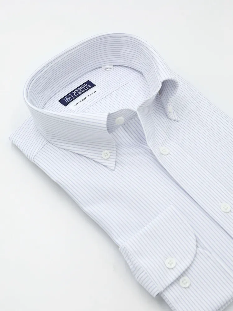 【ハイブリッドアイシャツ】長袖ワイシャツボタンダウン形態安定ストレッチマイクロストライプ通年