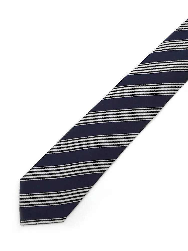 【シルク混】ネクタイレギュラーリクルートタイネイビーストライプnero通年