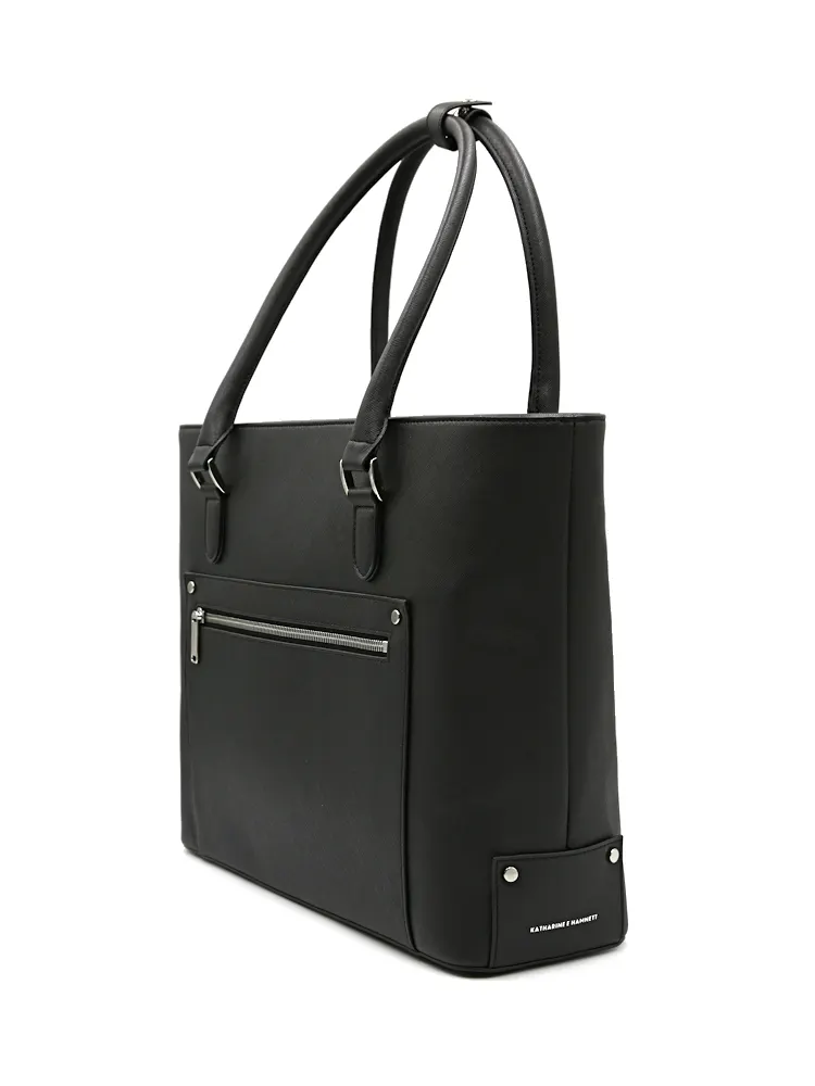 【KATHARINE E HAMNETT-キャサリン・イー・ハムネット-】サフィアーノ調 トートバッグ A4対応 通年(ブラック)