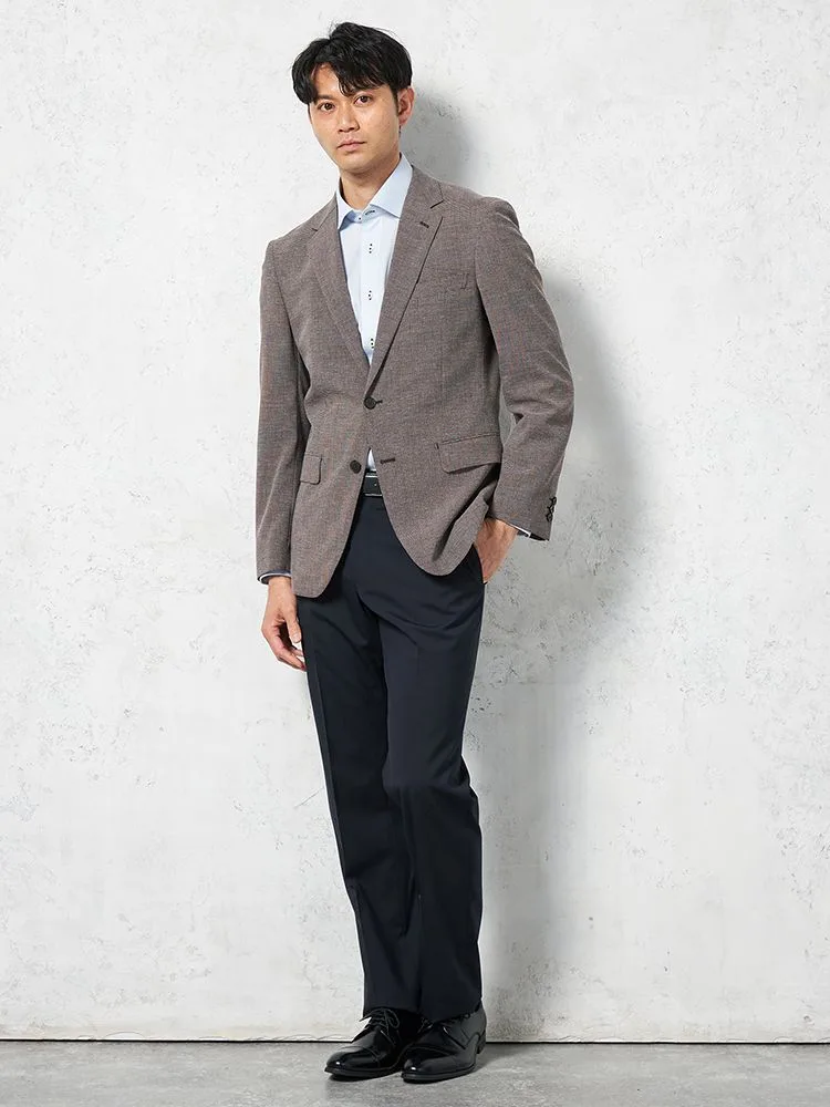 2つボタンのデザインで、クラシックなスタイルを演出。落ち着きと品のあるアイテムです。