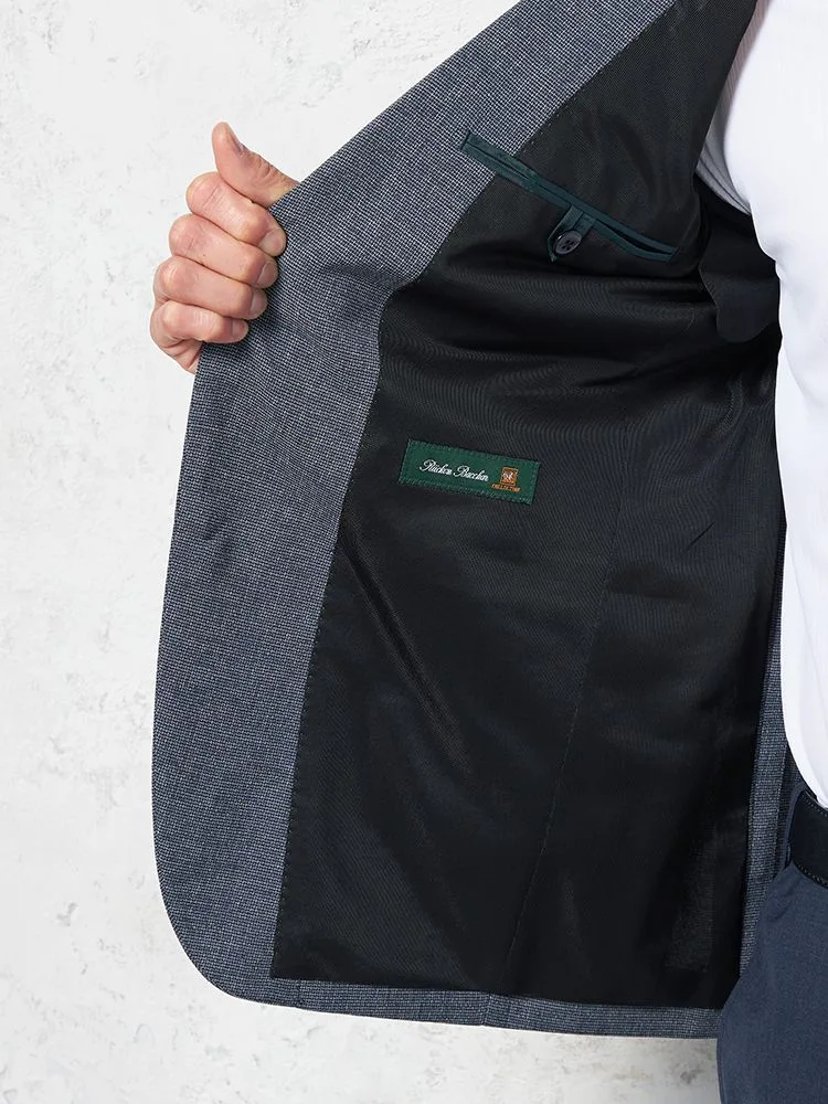 【ストレッチ】ジャケット2つボタンTOLLEGNO社生地使用キュプラ裏地グレンチェックS&MBLUELABEL