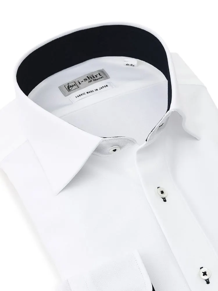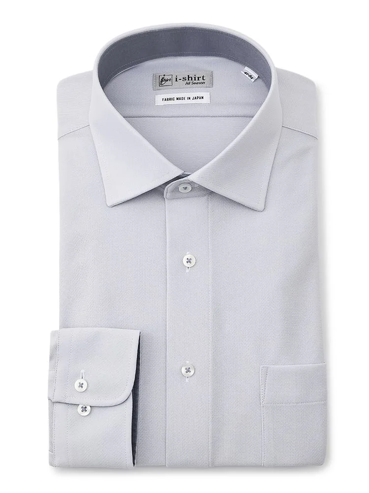【ハイブリッドアイシャツ】長袖ワイシャツセミワイド綿混素材形態安定織柄無地i-shirt通年